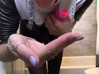Sister Vicky is a nun who likes to get naughty every chance she gets. Sister Vicky sneaks into the bathroom. Vicky knows you like to watch so she invites you in. She shows off her blue jewel buttplug that she has been wearing under her black opaque nylons before rubbing her pussy through them. Vicky just loves the feel of spit on the Nylons so she spits in her hand and rubs the saliva all over her pussy, ass and legs in the nylons. She gets her big vibrator and places it on her wet pussy over the nylons and has an amazing orgasm right in front of you. Hopefully nobody finds out what sister Vicky has been doing behind the closed bathroom door