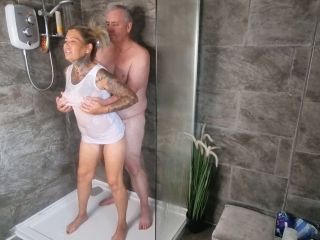 Billy pulls me into the shower with him and it straight our of a wet T-shirt contest before I suck off his big cock and the he fucks me hard!